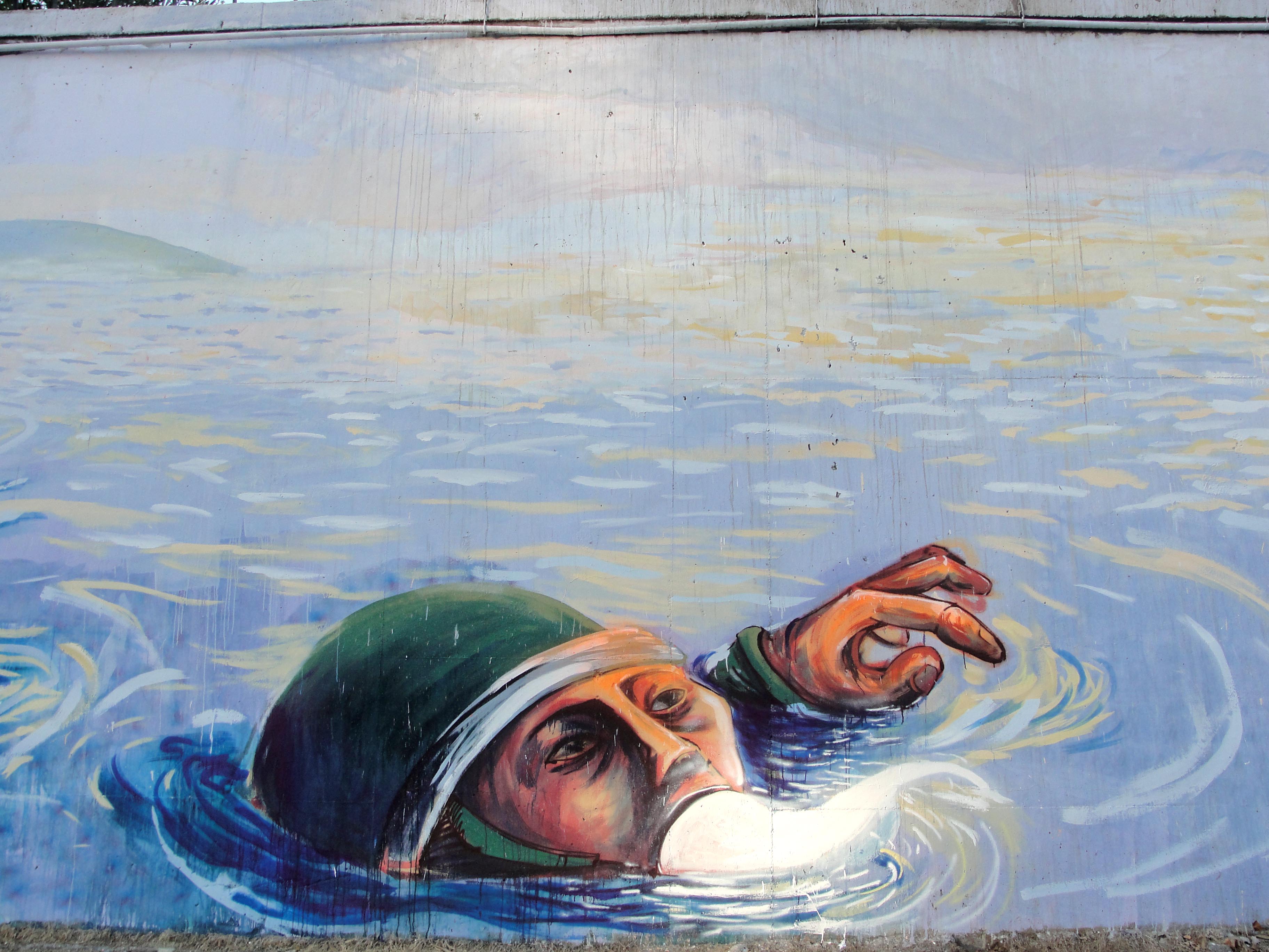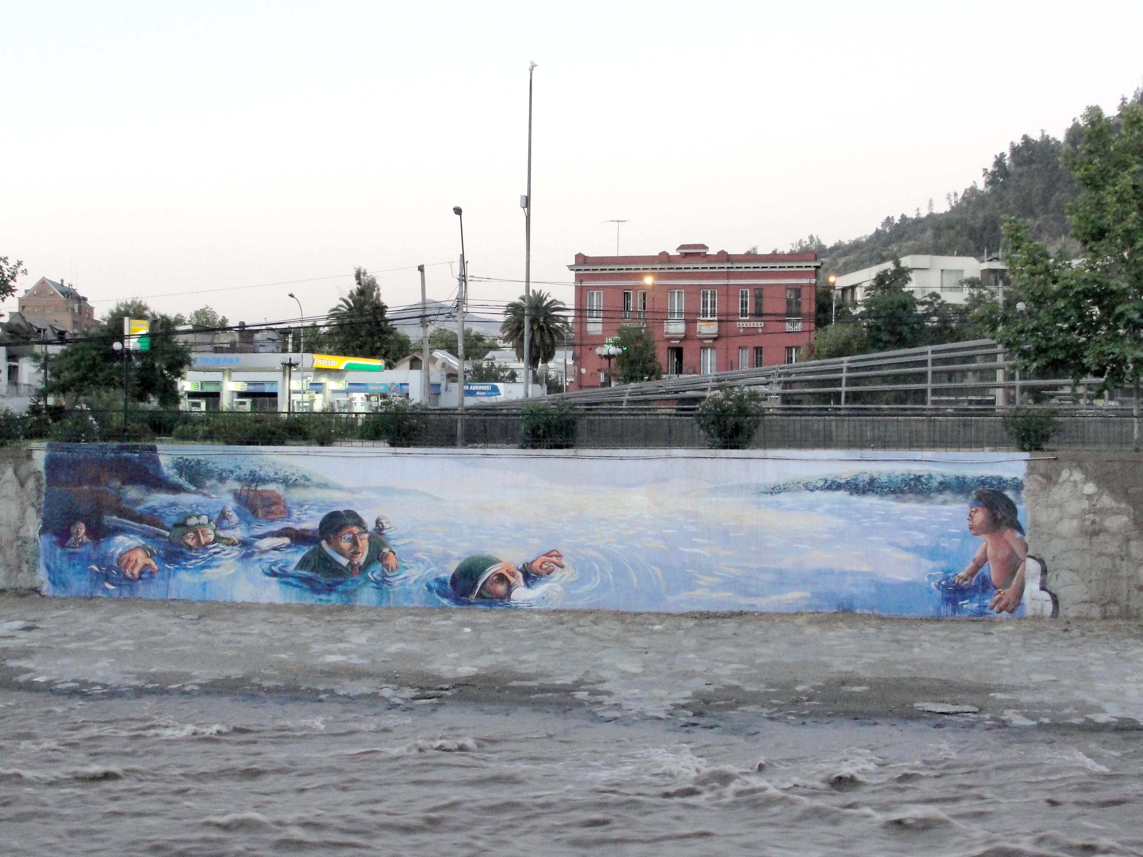Mural "La Lucha Mapuche en el Mapocho" , in Santiago Chile, Bellavista- 30 m x 5 m
